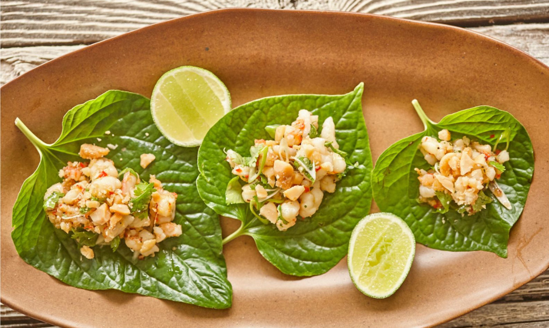 日本では馴染みの薄い「キンマ」(べテルリーフ)は、タイ料理では前菜の包み葉としてポピュラーな葉野菜です。