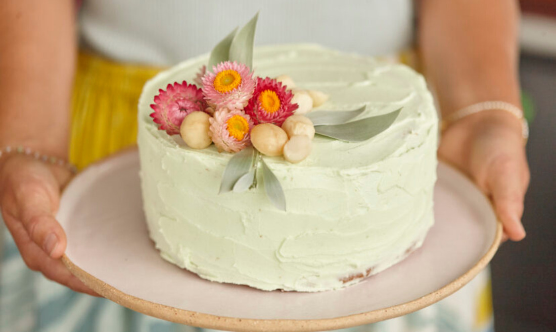 お祝いに必須のホールケーキですが、なかなかヘルシーさと美味しさを両立させるのは難しいもの。でもこのレシピならば、健康志向の方にも喜んでいただけることでしょう。砂糖不使用ながら、天然の甘味料とマカダミアの甘みでしっとりとした食感の風味豊かなケーキになりました。