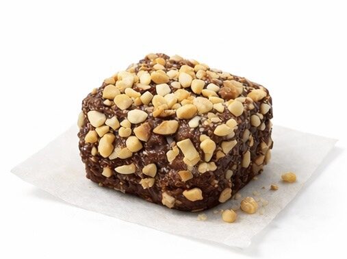 オーストラリア発祥の伝統菓子「ラミントン」をアレンジ。ふんわりとしたスポンジをチョコレートでコーティングし、マカダミアナッツをたっぷりとまぶしました。